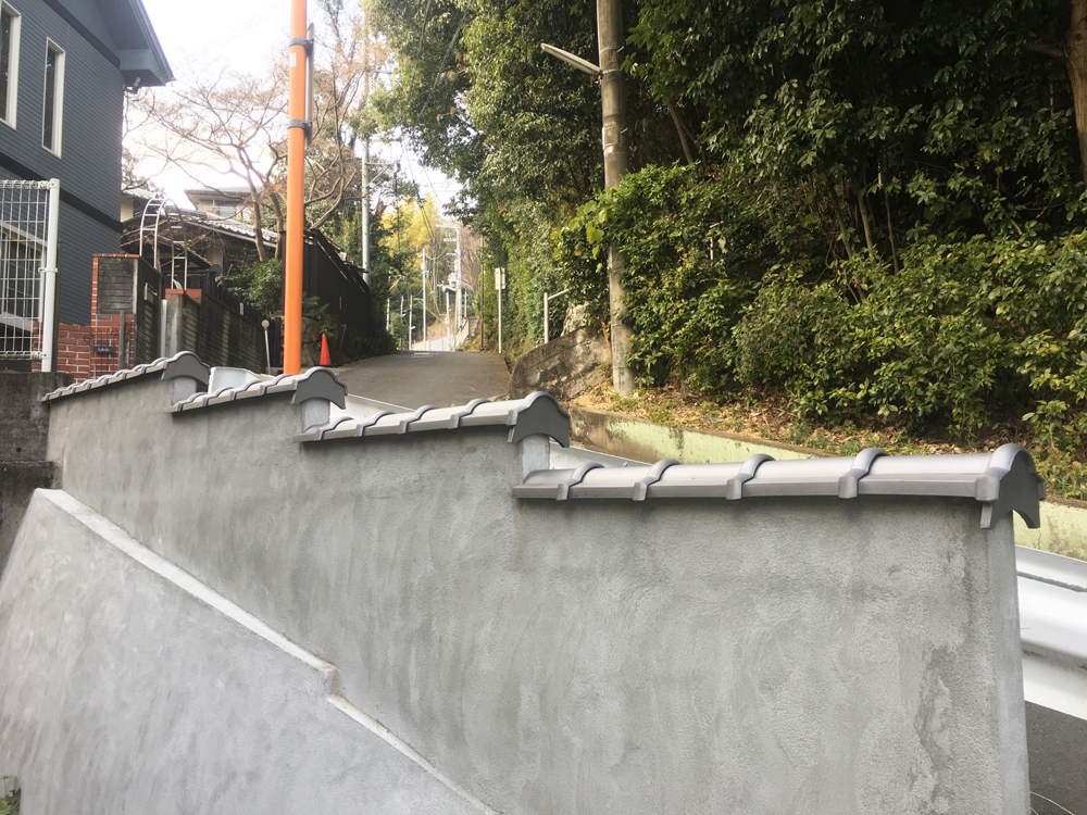 坂道にある塀の上に瓦を乗せるみたいです。