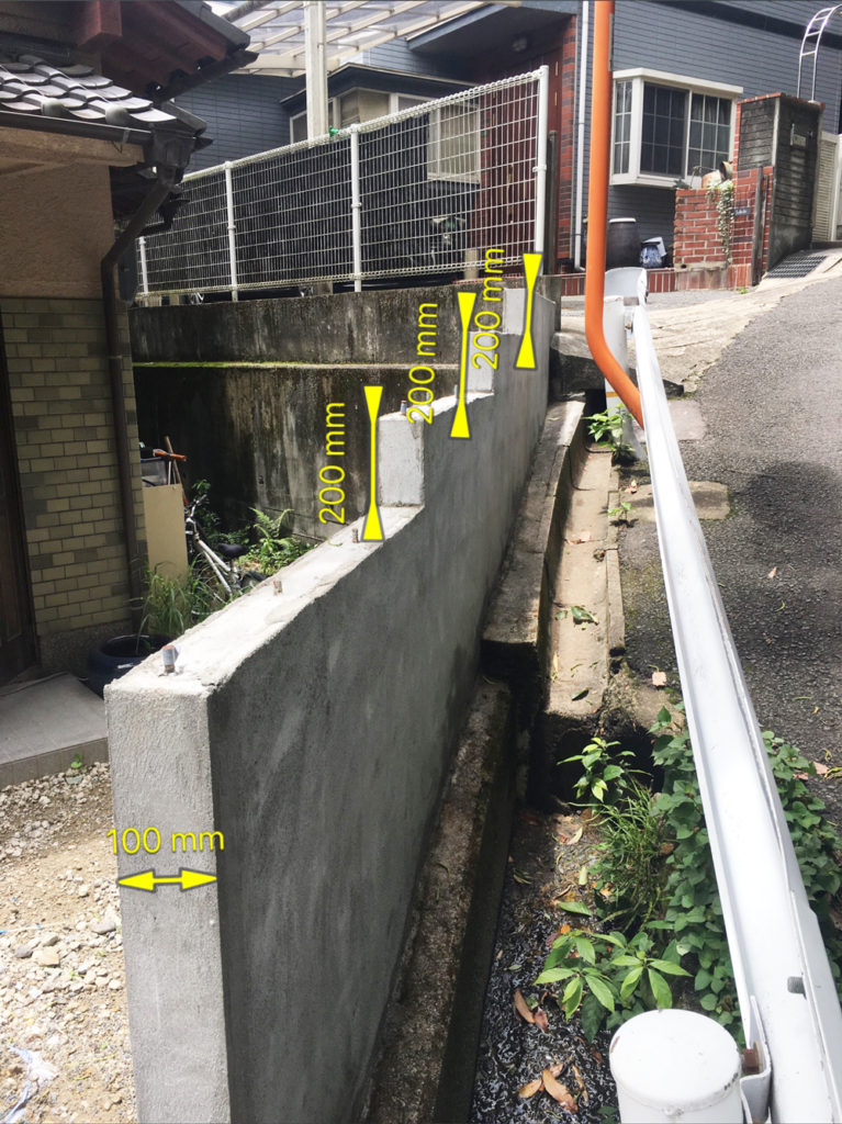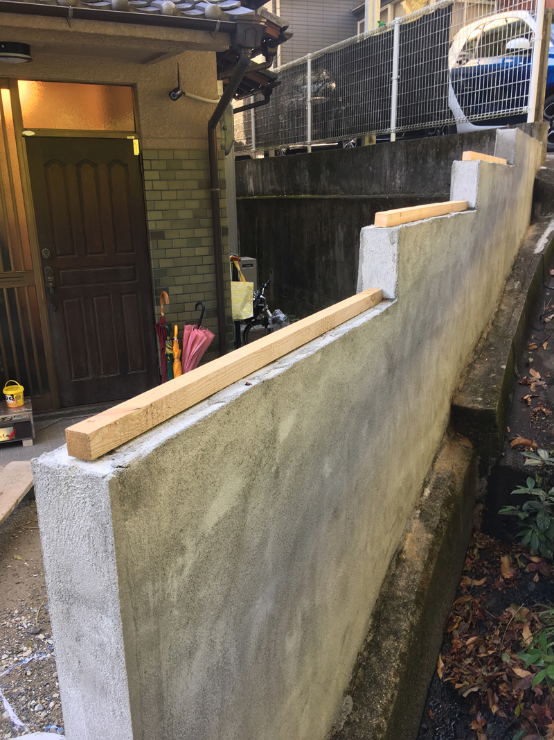 はじめに塀に桟木を打ち込んだ様子です。