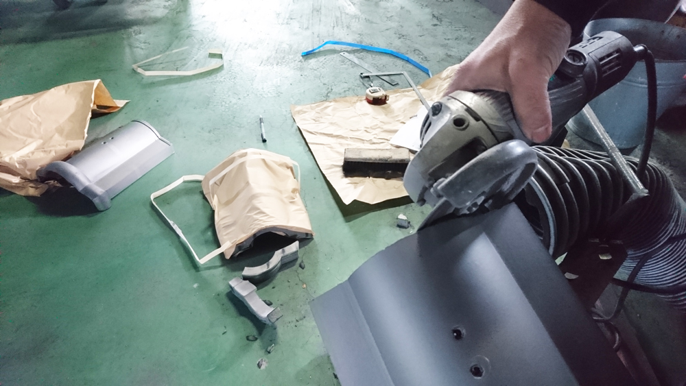 切断機でギューインと削ります。