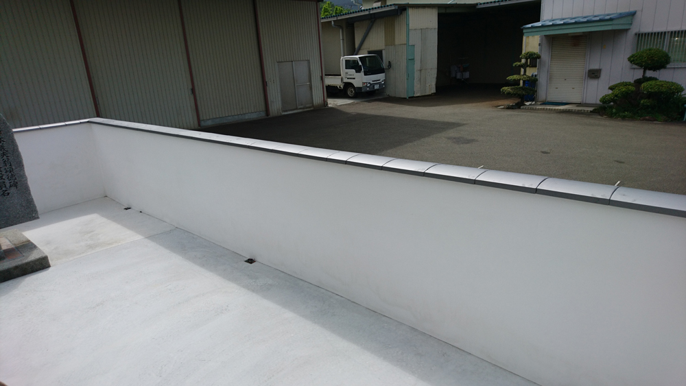 漆喰で白く塗られた塀にシンプルないぶし銀の瓦は、とても似合います。