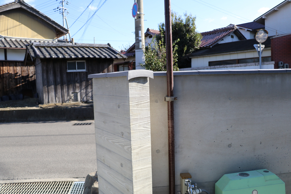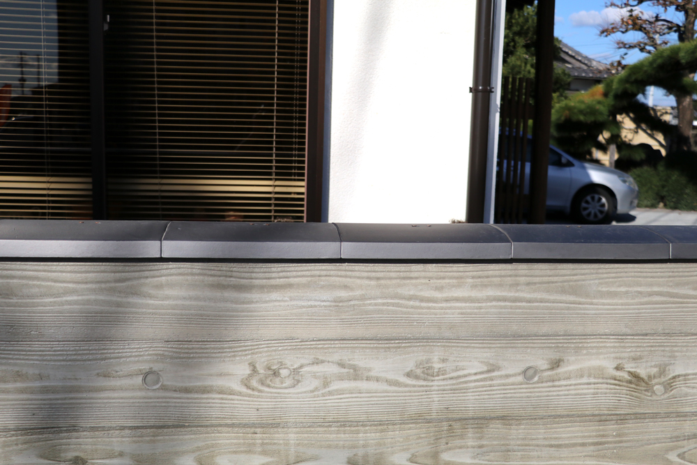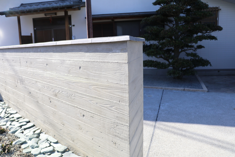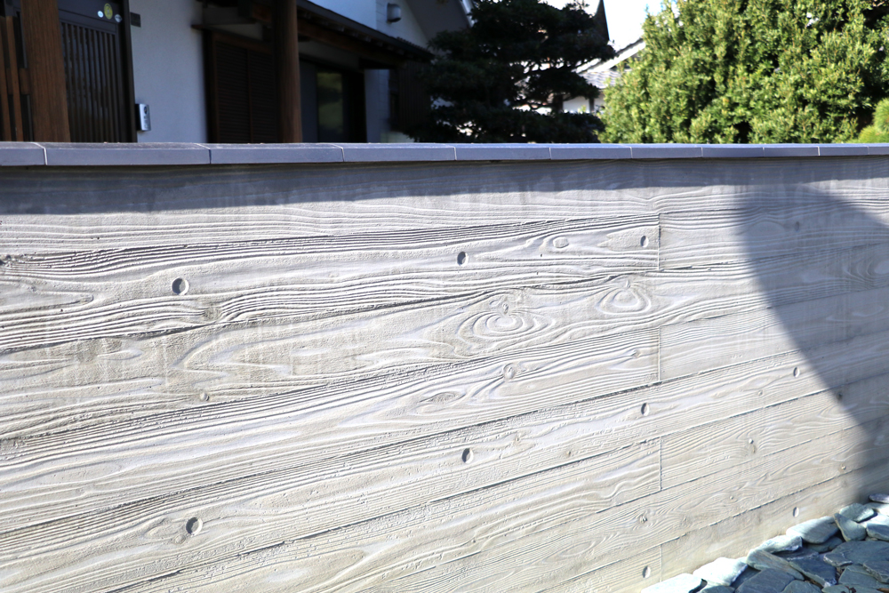 塀も木目模様ですが、コンクリートでできたモダンな塀です。