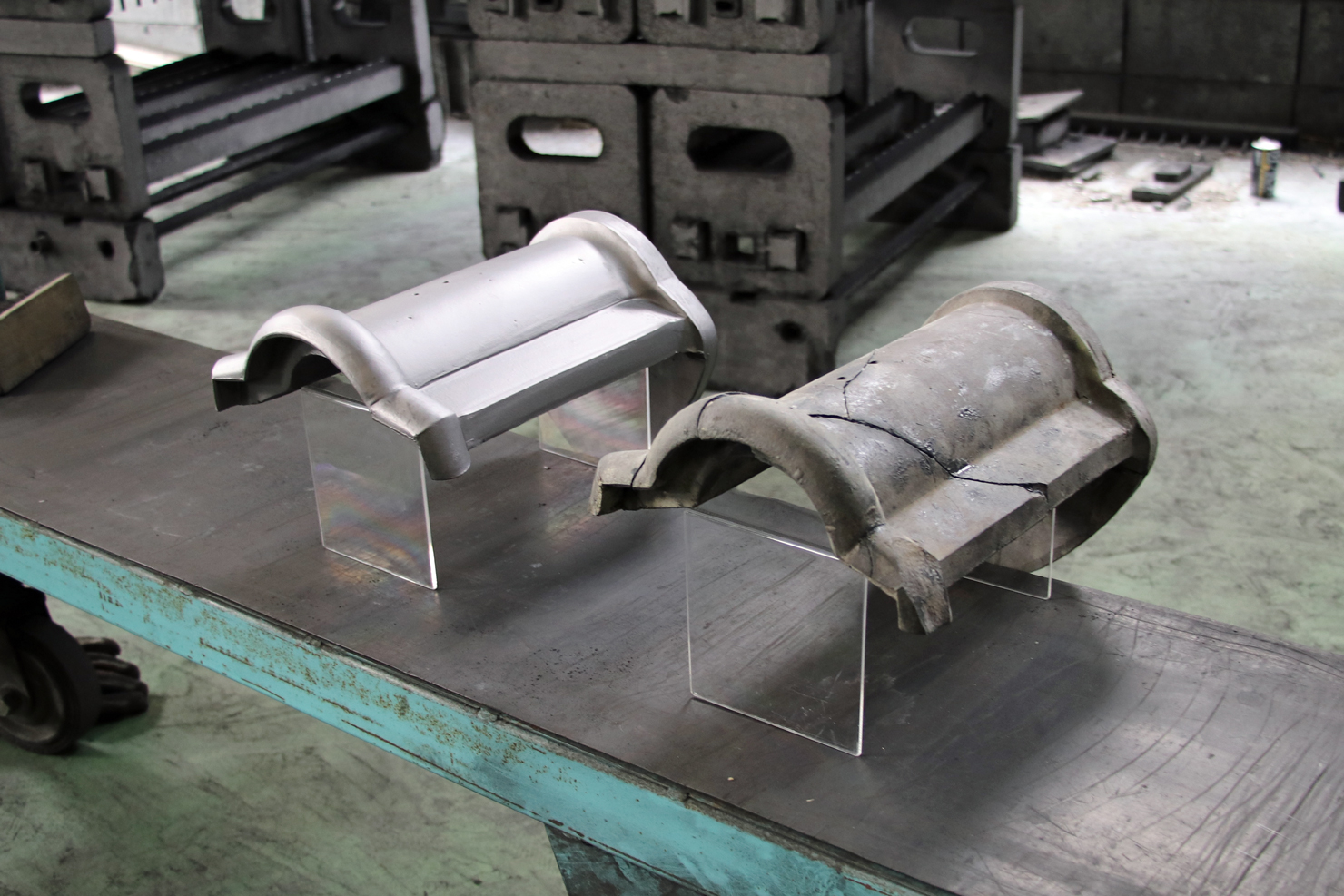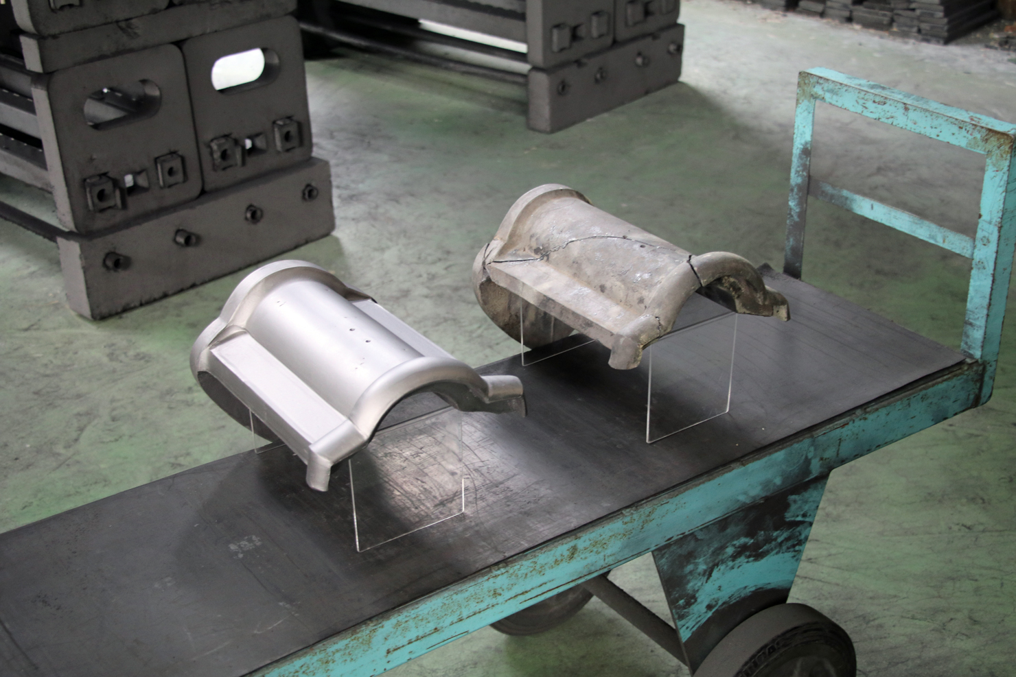似たような形状の塀瓦もあるのですが、厚みが違ったり、紐(突起した部分)のアールが違ったり端の部分の大きさが異なったりするため、一からの製作になりました。