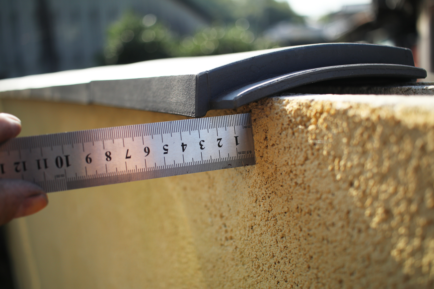 今回お客様からのお問い合わせで、ブロックからどれくらい出すとどんな見た目になるかを確認したいという事で、さっそく写真を撮ってお送りしました。
