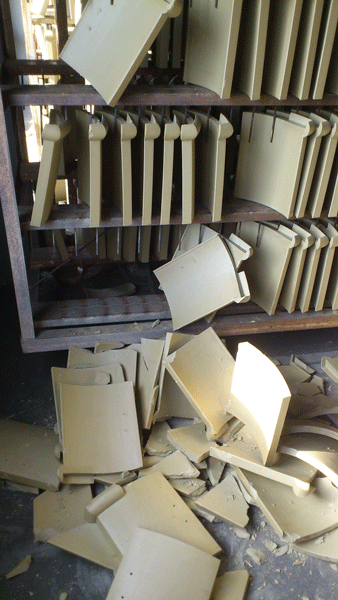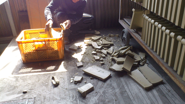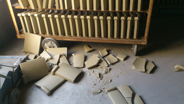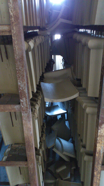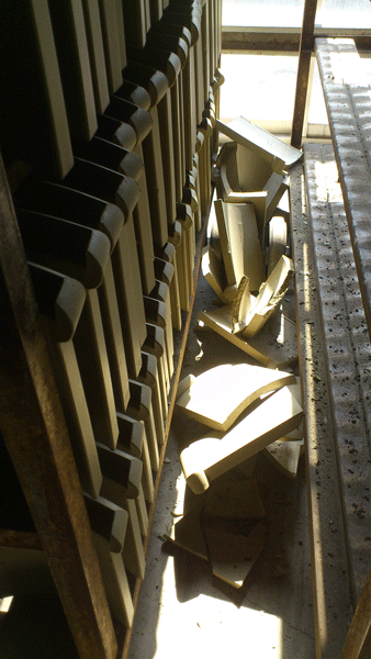 二階の台車に載せてある白地が結構揺れ落ちていました。