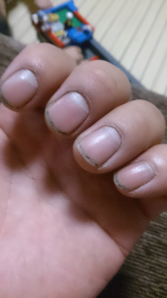 次は、瓦屋さんの油を触ったり、ゴミが入った爪です。